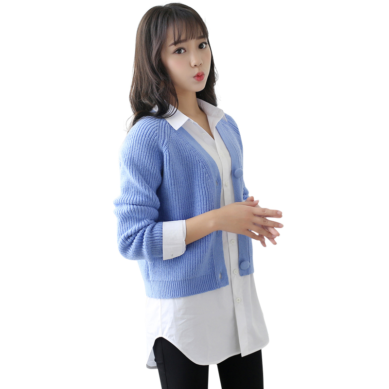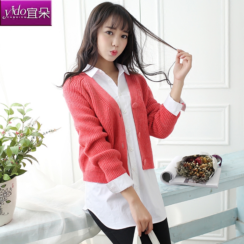 / 春季新款韓版純色長袖開衫外套女春秋短款外搭針織衫女開衫