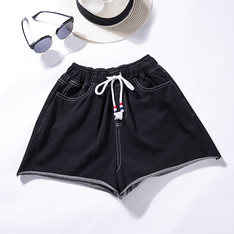/ 韓版松緊腰闊腿牛仔短褲女夏高腰寬松顯瘦休閑學生卷邊熱褲潮