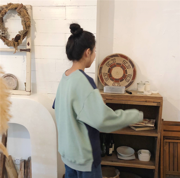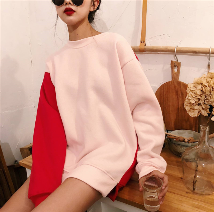 一個衛衣兩個顏色 紅拼米粉色 藍拼淺豆綠 都是非常顯白的顏色