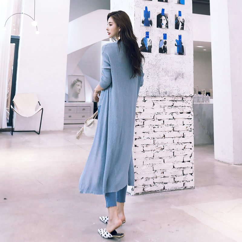 / 時尚套裝女牛仔小腳褲2018秋季新款中長款針織長袖開衫吊帶三件套
