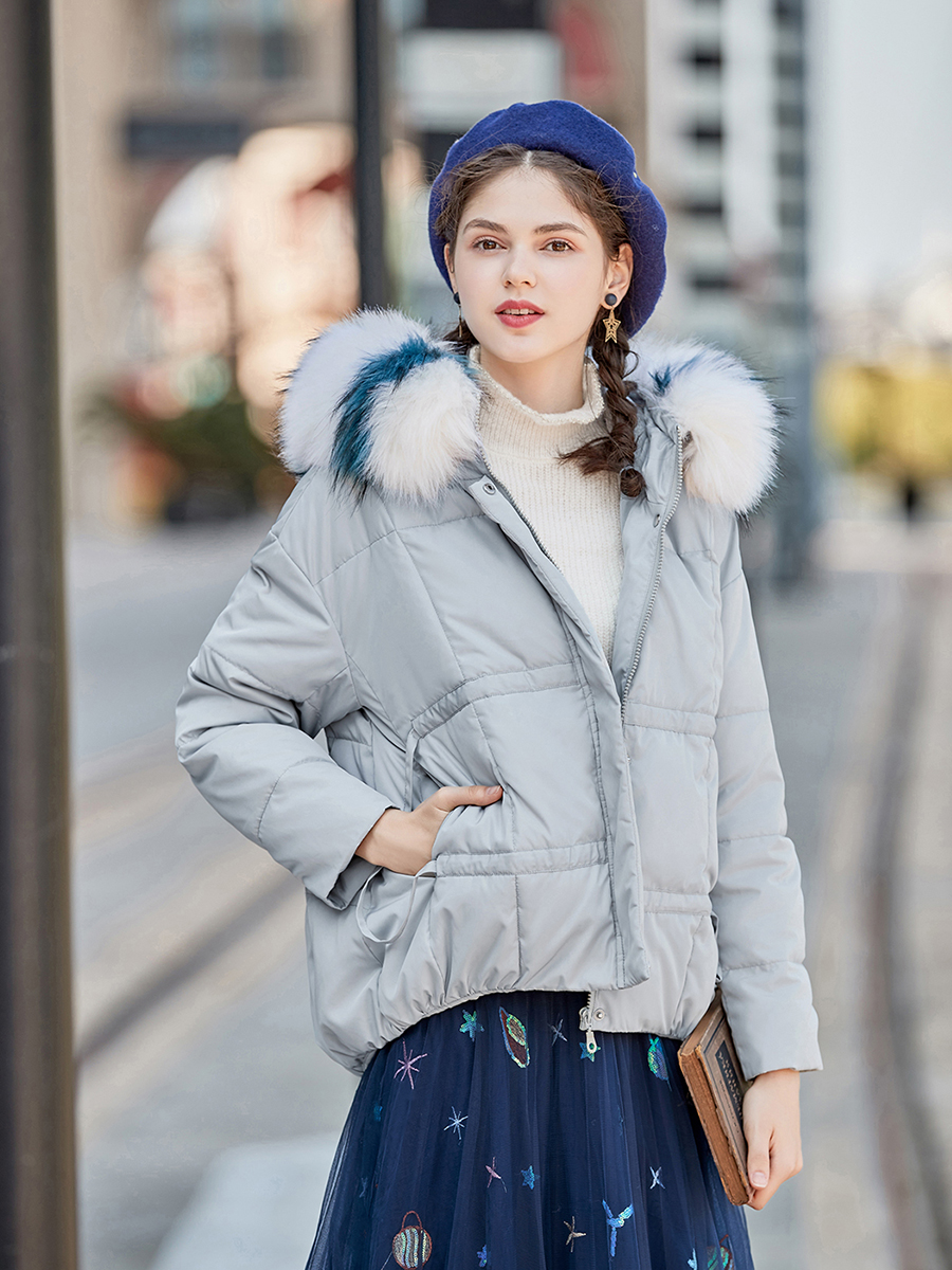 MG小象冬季大毛領棉衣女短款學生小清新面包服2018新款寬松棉服潮