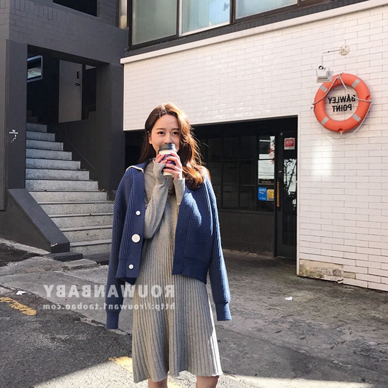 / 赫本風網紅女神心機晚晚風兩件套裝氣質森女系毛衣加連衣裙子冬裝