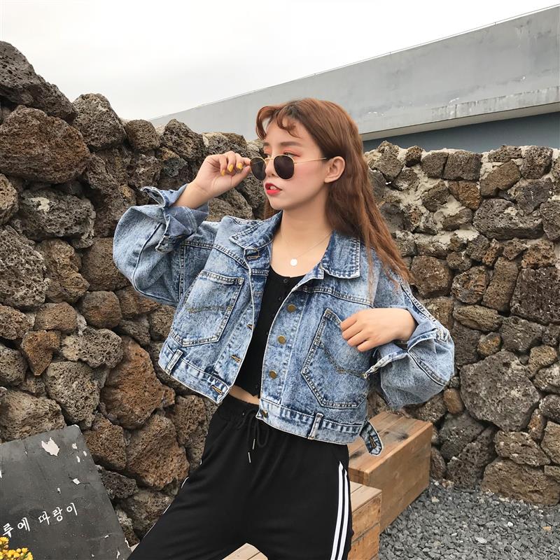 / 秋裝女裝韓版復古做舊牛仔外套短款百搭寬松bf風長袖夾克開衫上衣