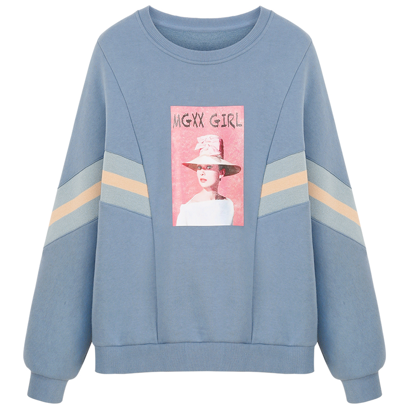 MG小象套頭加絨衛衣女寬松韓版冬季2018新款學生印花圓領bf風上衣