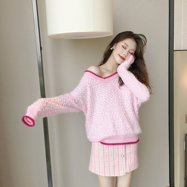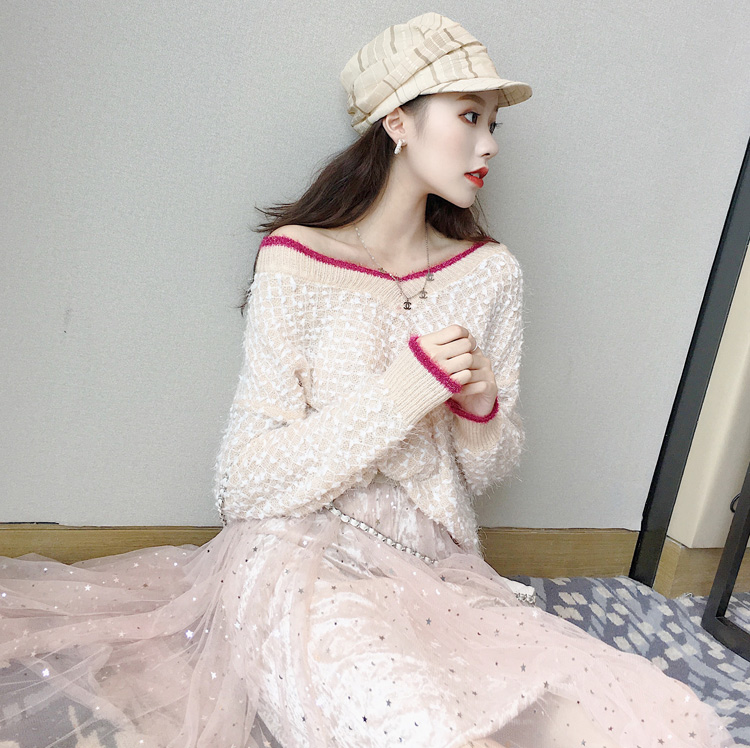 / 網紅同款設計感甜美百搭露肩毛衣星星半身裙港風時尚套裝兩件套女