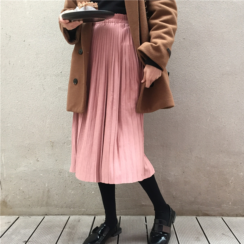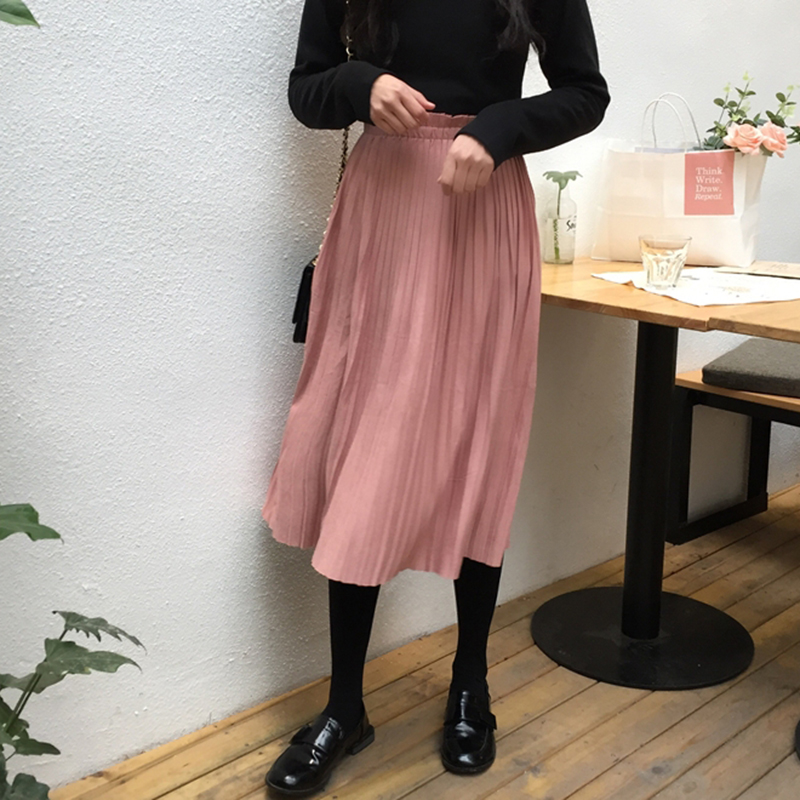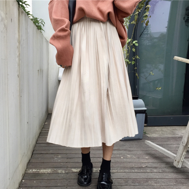 / 氣質高腰純色半身裙秋裝女2018新款顯瘦a字百褶裙時尚百搭中長裙