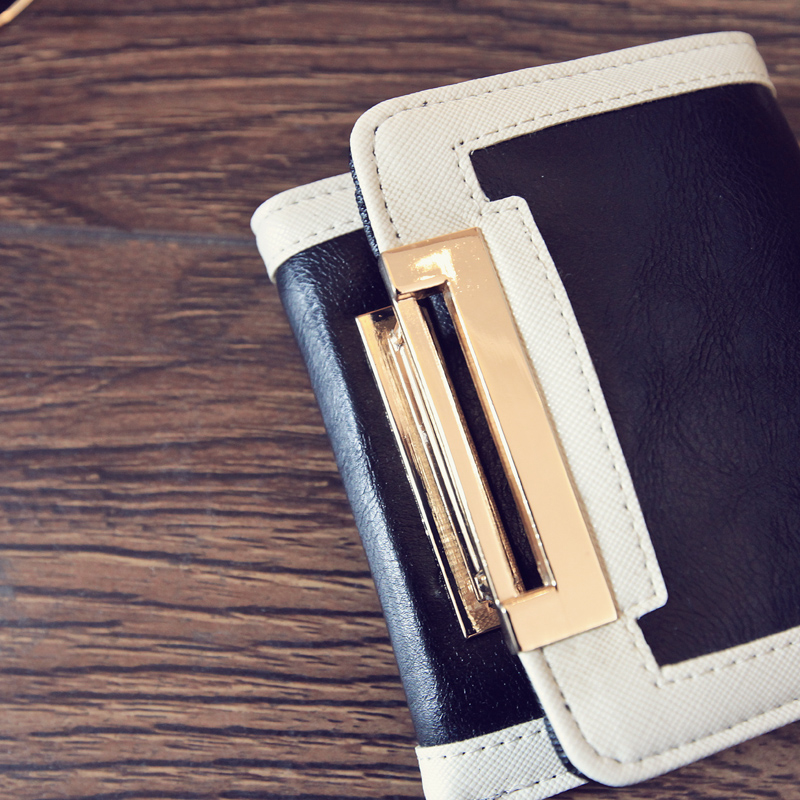 / 日韓女士撞色短款三折錢包 新款簡約時尚鎖扣百搭手拿零錢包