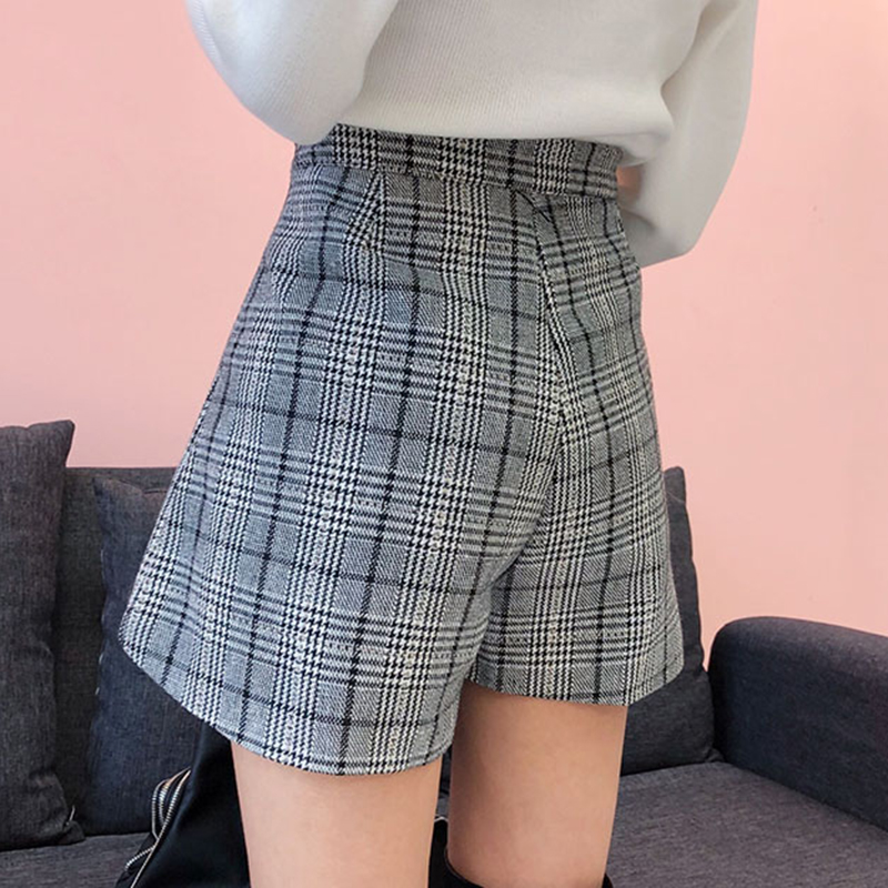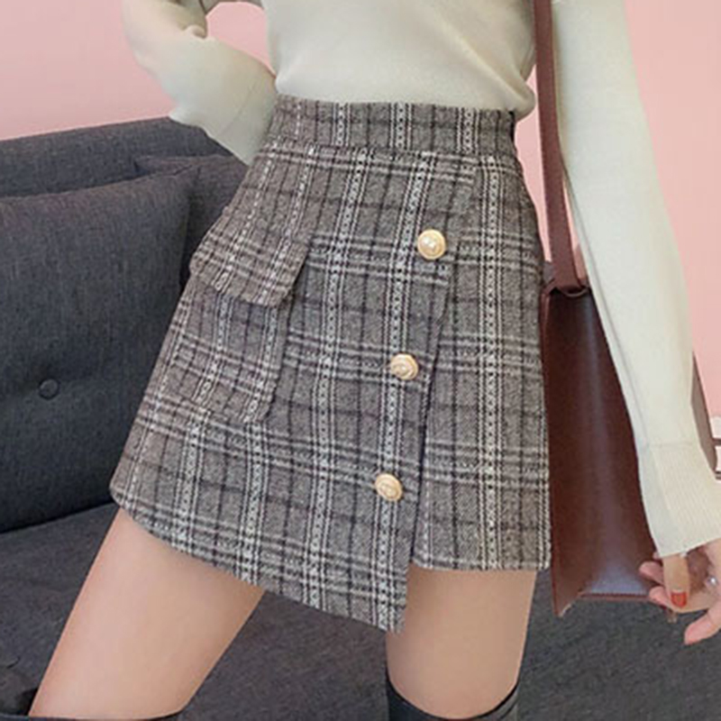 秋裝女2018新款韓版高腰顯瘦不規則格紋半身裙褲子學生復古短褲裙
