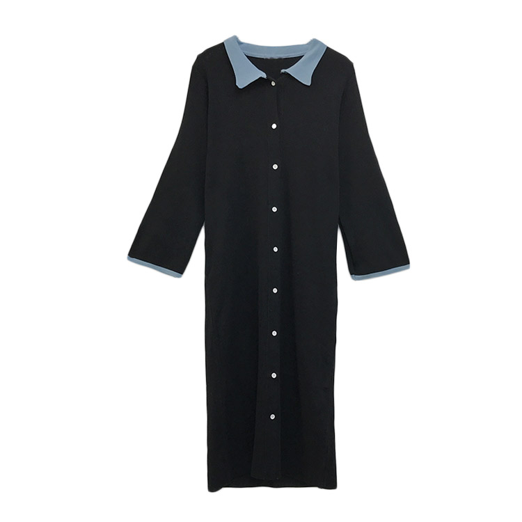 chic早秋裙子長裙女慵懶風時尚韓版撞色拼接polo領針織顯瘦連衣裙
