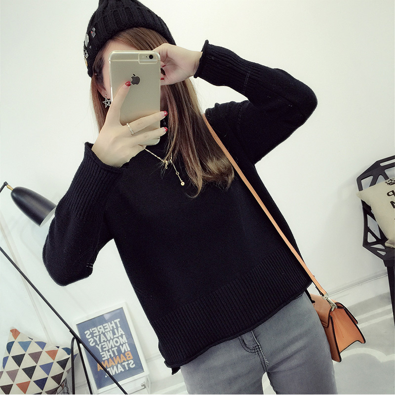 套頭毛衣女秋冬韓版短款針織衫純色上衣打底衫女裝秋裝新款潮