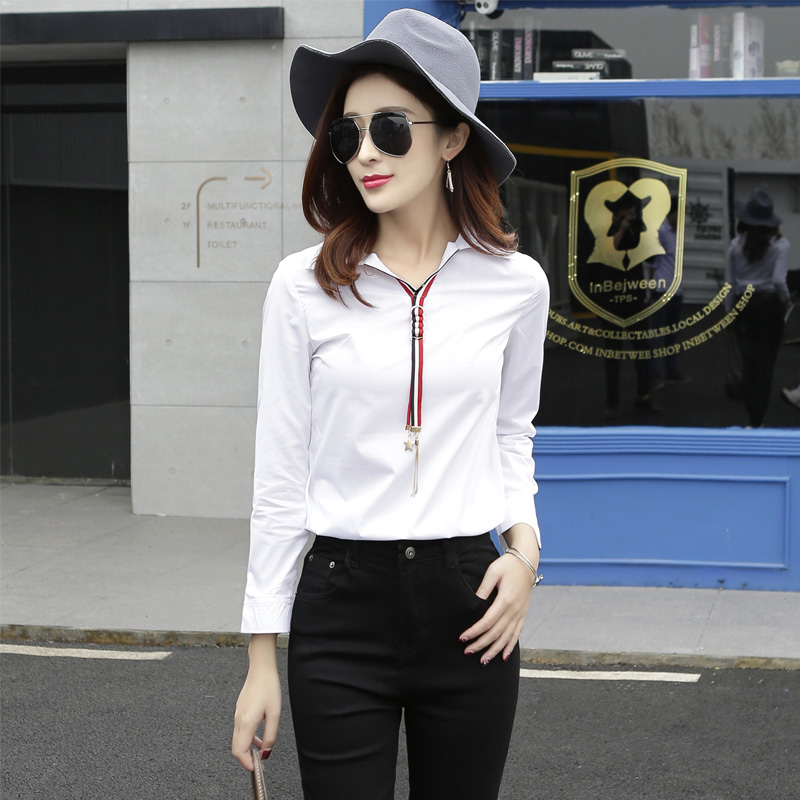 / 春白襯衫女長袖上衣九分袖韓版簡約修身學生純棉打底襯衣學院風夏