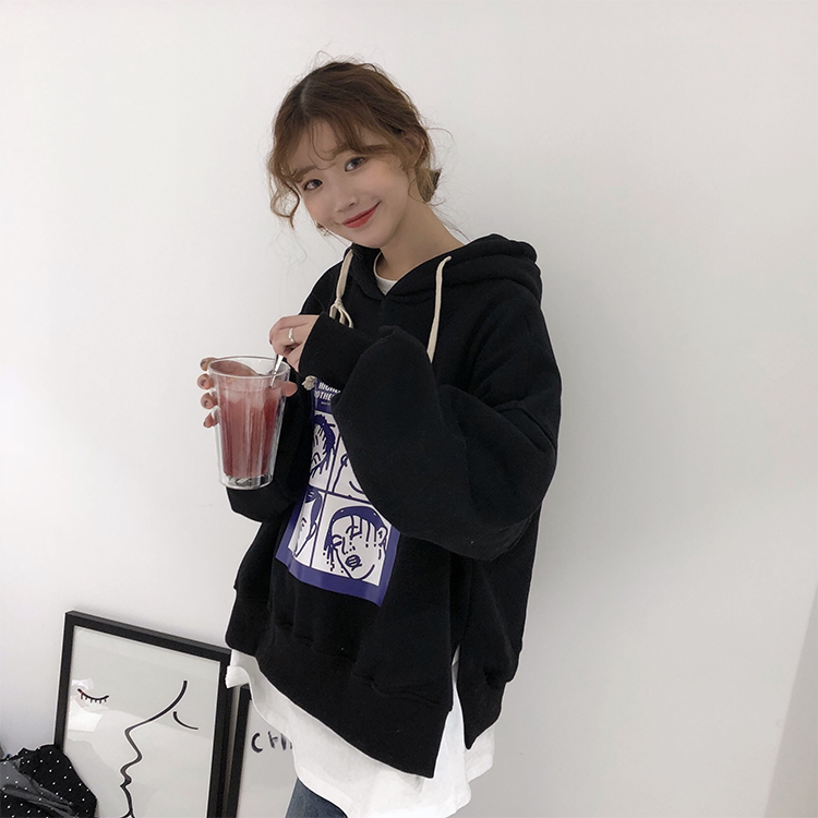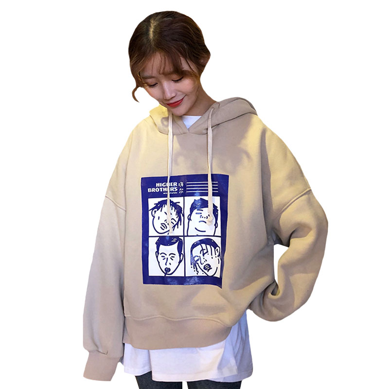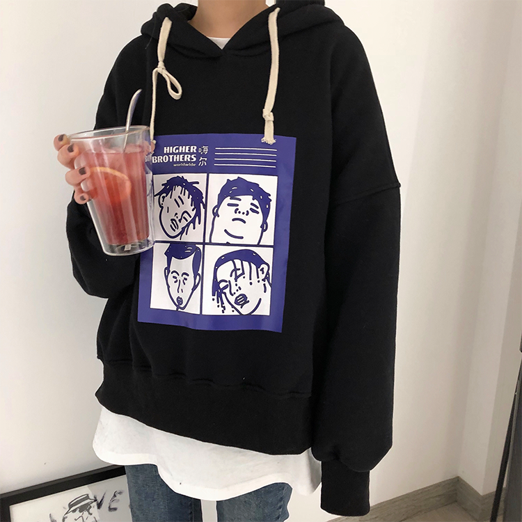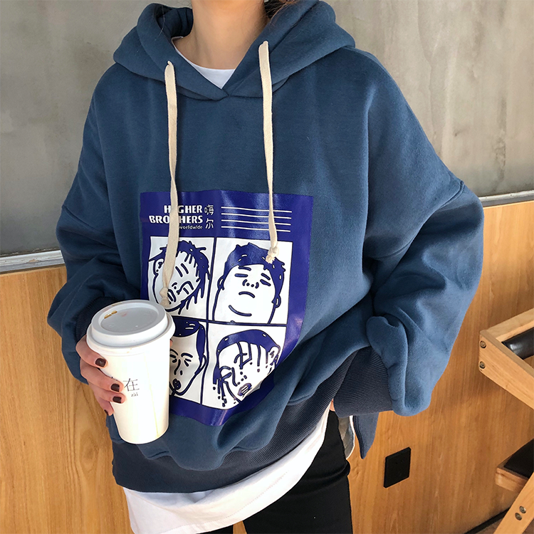 / 秋冬韓版原宿風卡通加絨加厚寬松連帽套頭pp home超火衛衣外套女