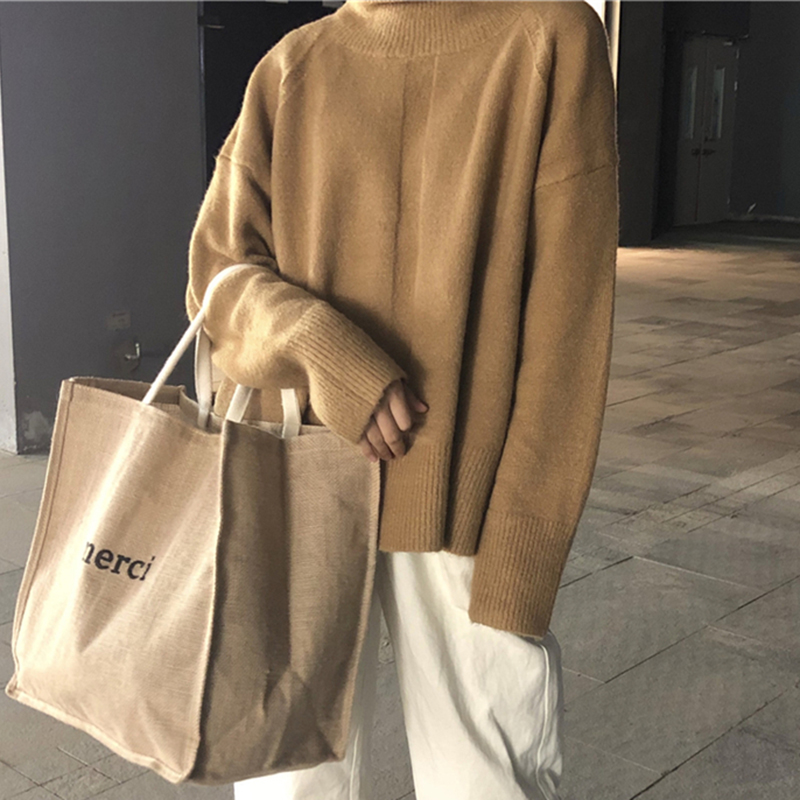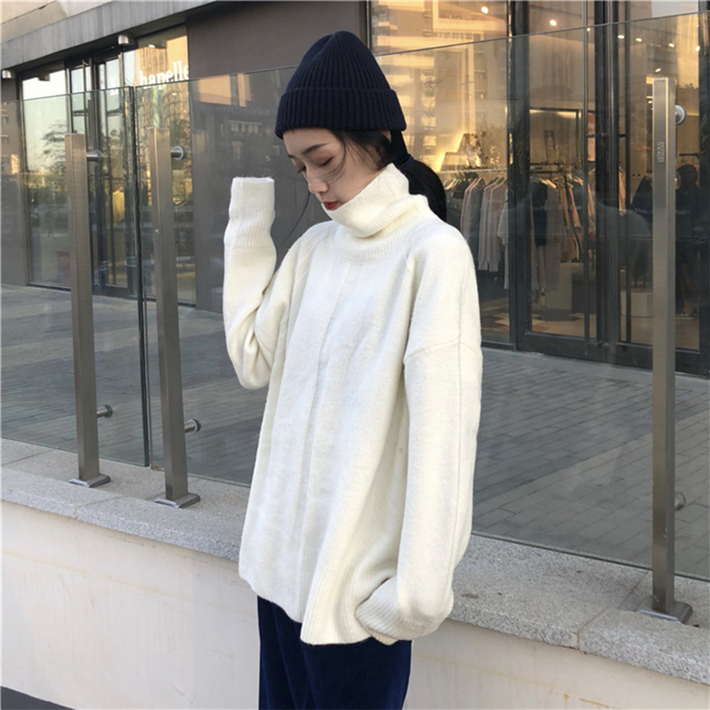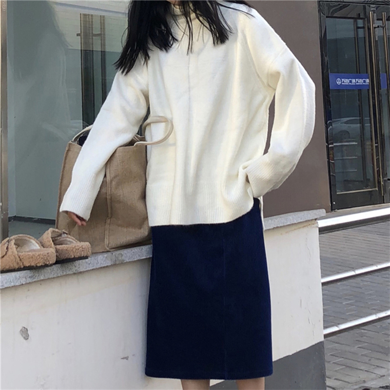 / 慵懶風高領下擺開叉針織衫女秋冬裝2018新款網紅寬松套頭毛衣外套