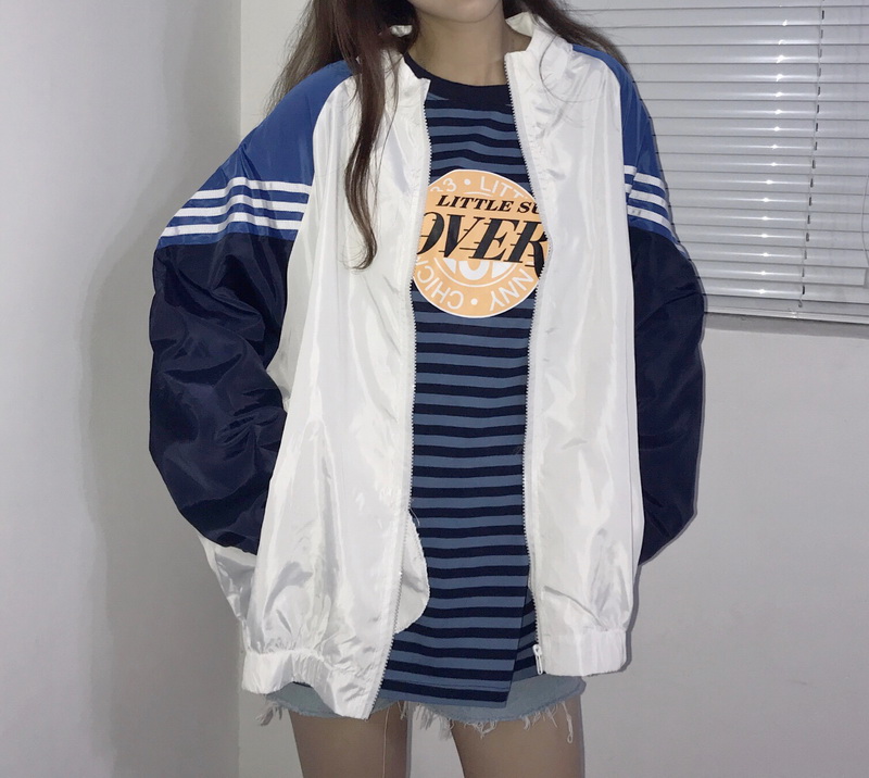 / 秋季女裝韓版撞色BF風寬松拉鏈長袖外套學生休閑夾克棒球服上衣潮