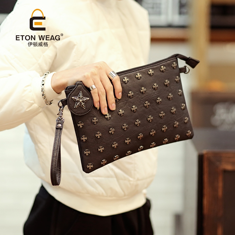/ 新款韓版男包鉚釘手包手拿包單肩包斜跨包信封包文件包潮