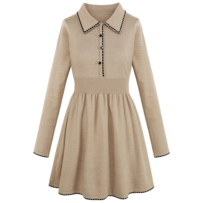 / MG小象收腰針織連衣裙女長袖修身顯瘦秋冬新款中長款學生氣質裙子