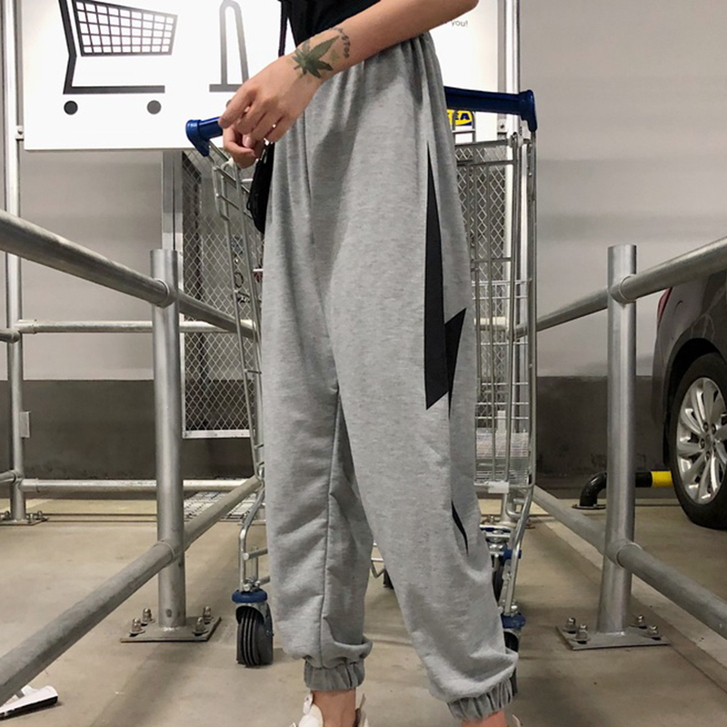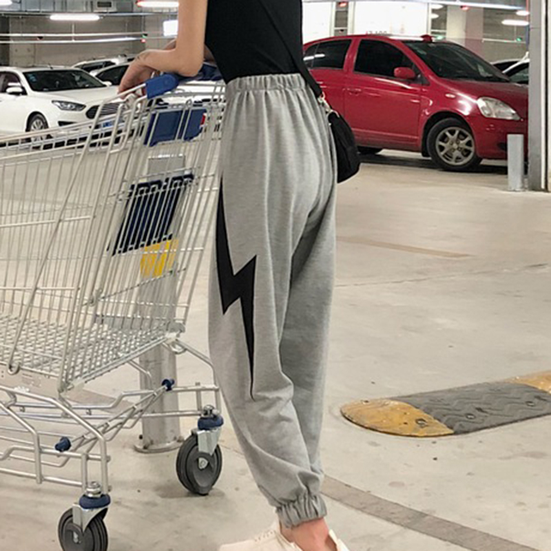 / 休閑褲女夏季新款韓版女裝閃電圖案束腳九分運動褲百搭寬松哈倫褲
