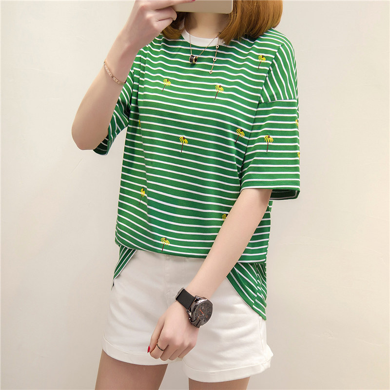 / 女裝春裝新款潮條紋短袖t恤女寬松上衣韓版體恤夏裝學生百搭