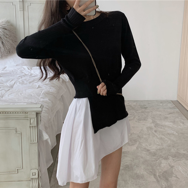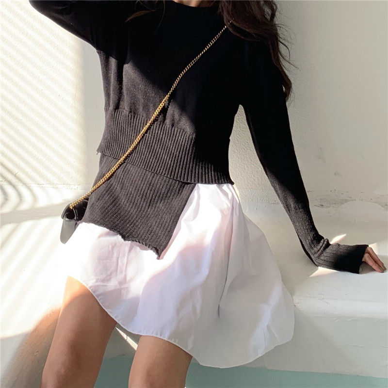 / 秋冬女裝2018新款時尚撞色拼接氣質A字egg連衣裙復古法式茶歇裙子