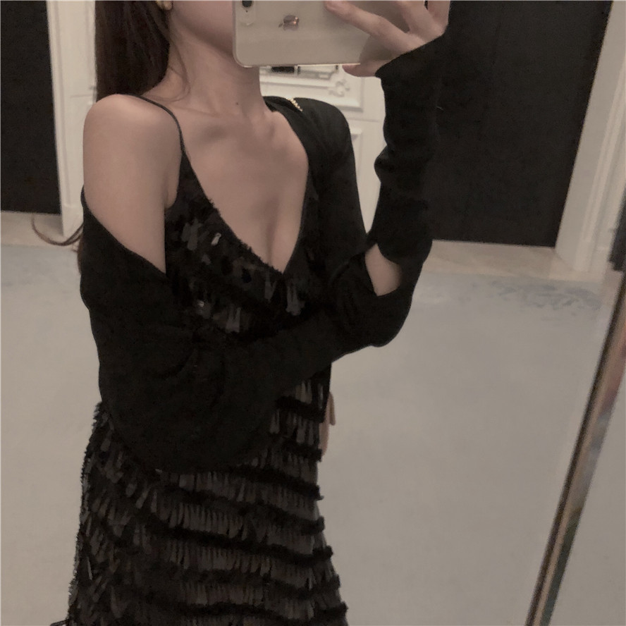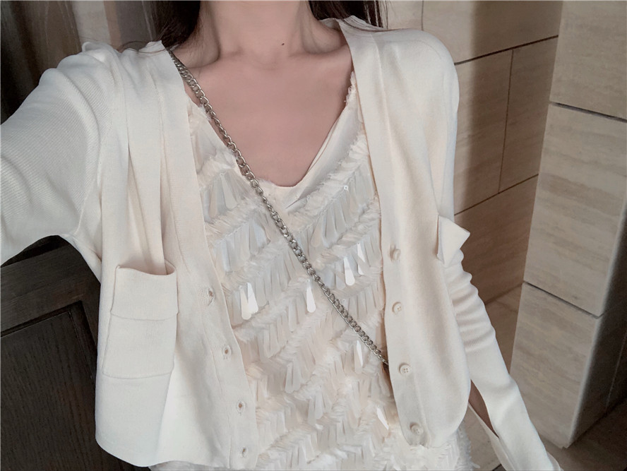 黑色針織外套|白色針織外套|黑色亮片吊帶|白色亮片吊帶