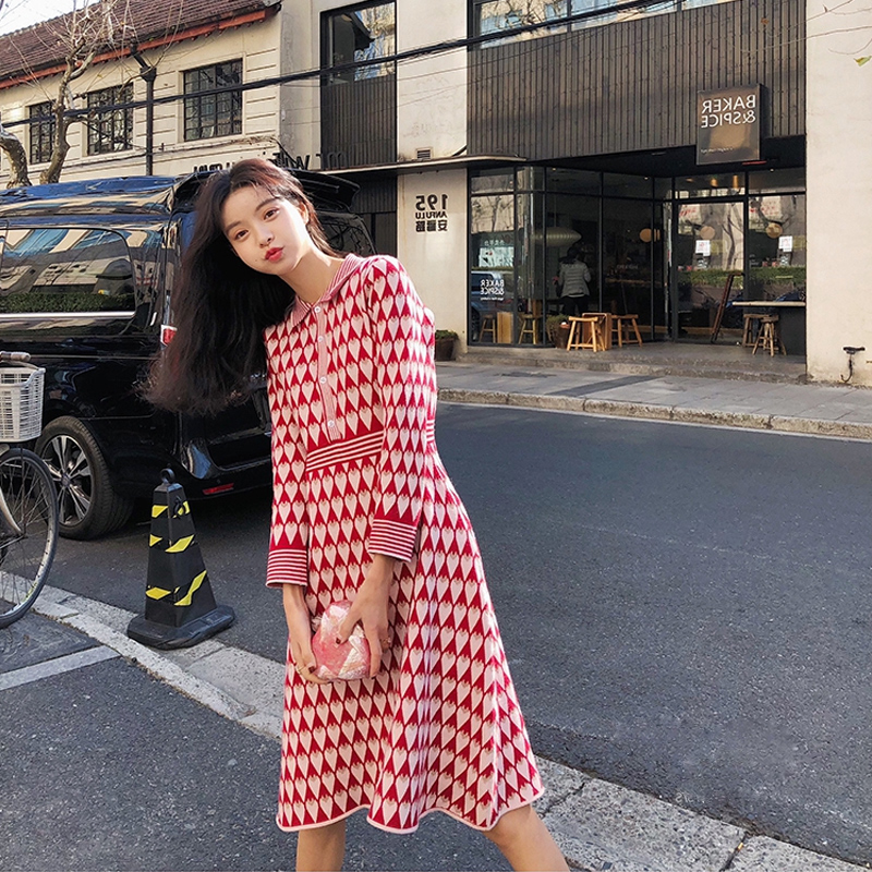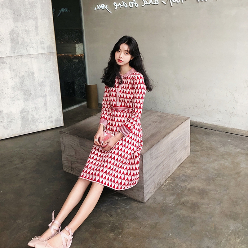 秋裝2018新款長袖少女心冷淡風超仙初戀裙子女學生復古針織連衣裙