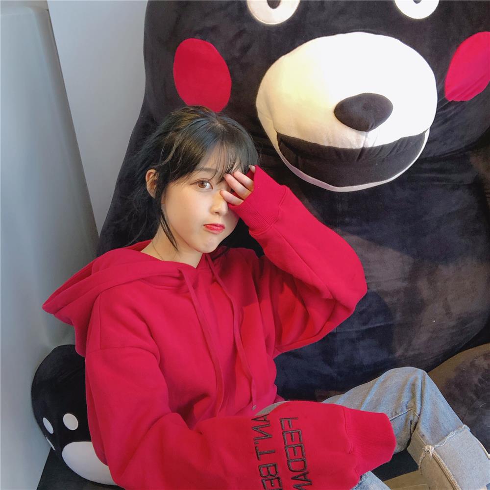 2018新款秋冬韓版字母刺繡加絨中長款BF風寬松連帽超火衛衣外套女