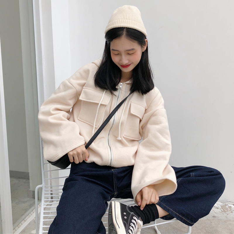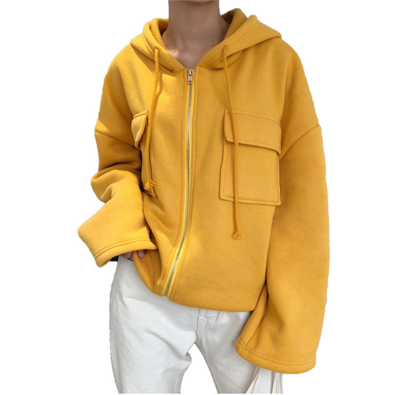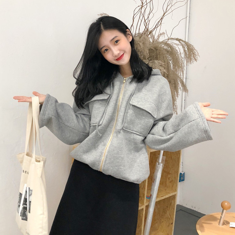 秋冬女裝2018新款韓版寬松加絨拉鏈開衫學生休閑連帽衛衣上衣外套