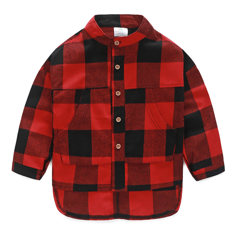 寶寶格子襯衣 秋裝新款童裝男童裝兒童立領大口袋襯衫tx-5958