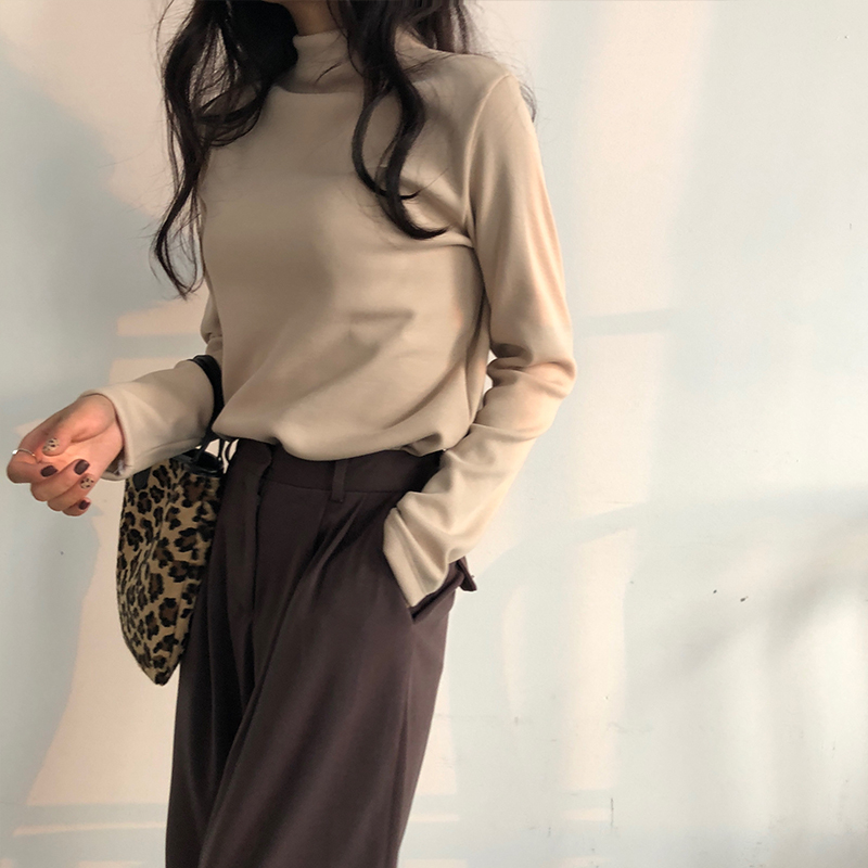 / chic韓風加絨加厚秋冬套頭新款百搭時尚上衣修身長袖打底衫T恤女