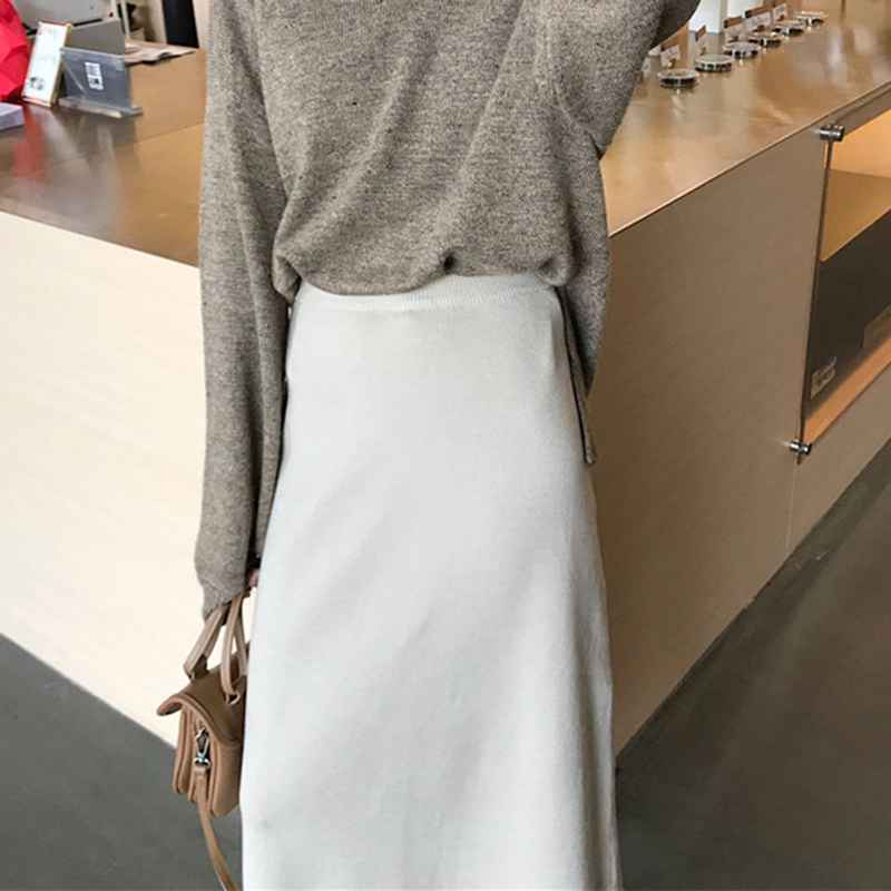 / 復古黑色中長針織裙秋裝女2018新款韓版高腰顯瘦A字裙氣質半身裙