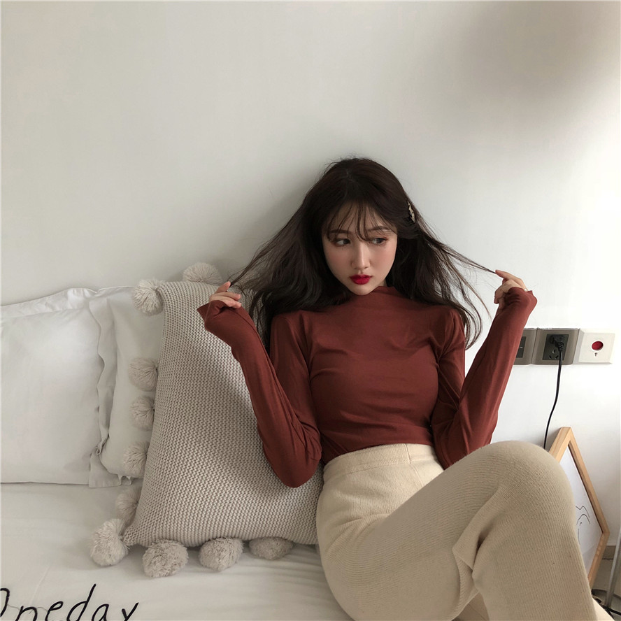 秋裝女2018新款基礎打底衫韓版修身顯瘦純色簡約長袖半高領T恤衫