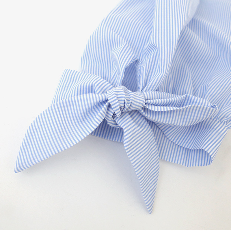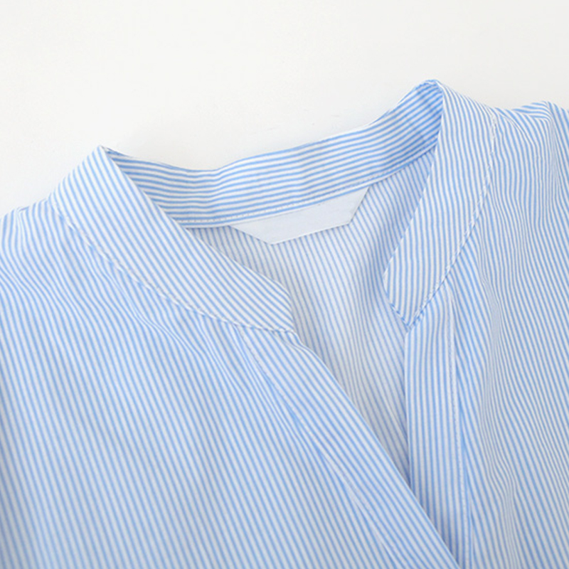 V領襯衫女2017夏裝新款韓版女裝條紋中長款寬松大碼立領學生上衣