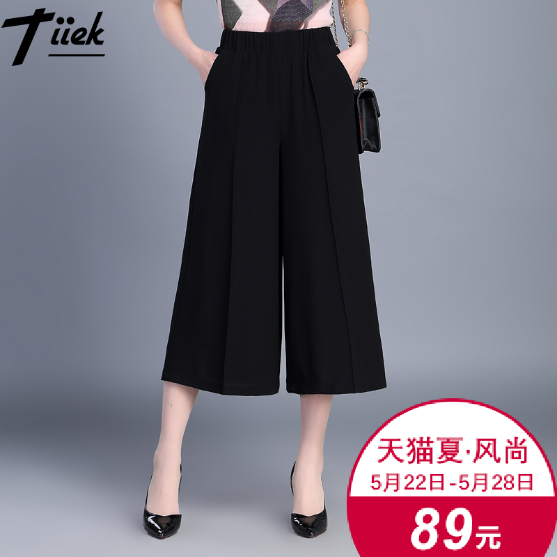 / 雪紡夏季九分闊腿女褲休閑直筒寬松新款七分韓版學生高腰顯瘦