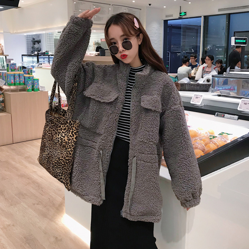 / 秋冬女裝2018新款學生羊羔毛棉襖外套韓版寬松長袖系帶收腰棉衣服