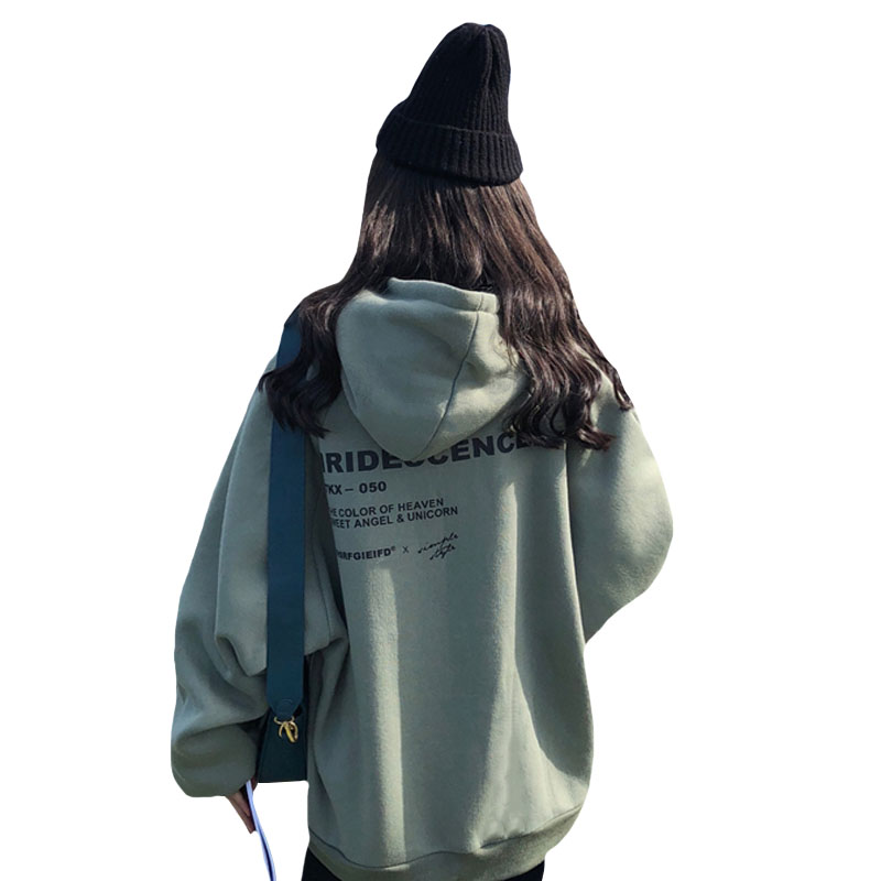 / 秋冬女裝韓版中長款復古寬松連帽慵懶風字母加絨加厚衛衣上衣外套