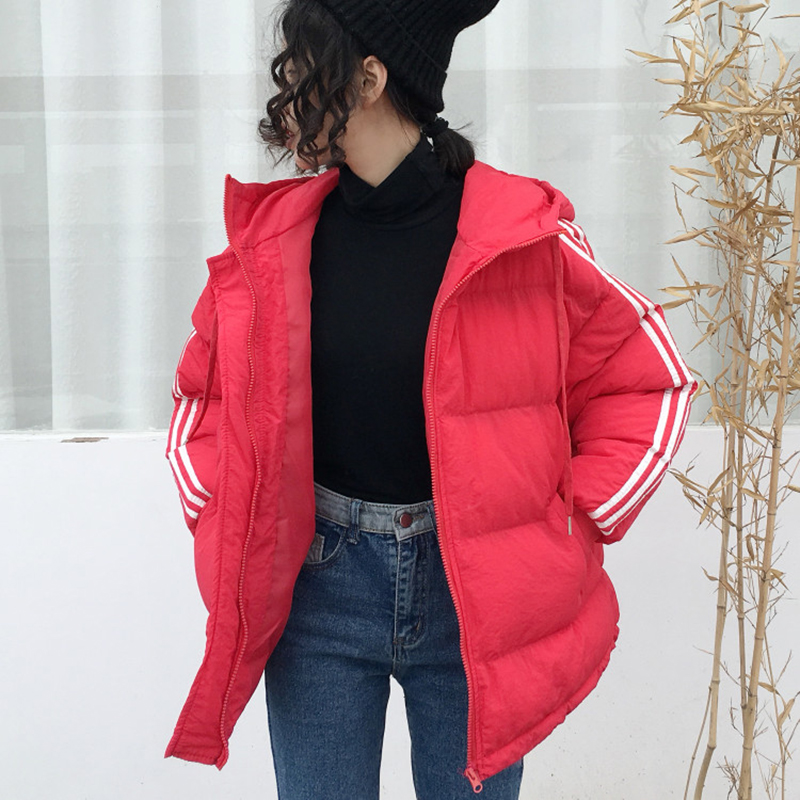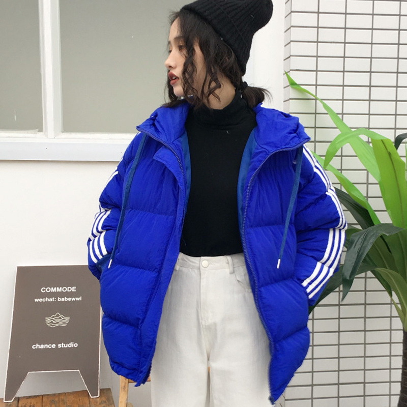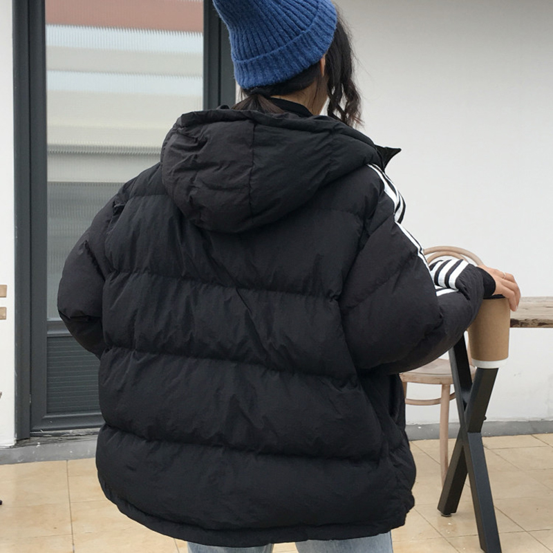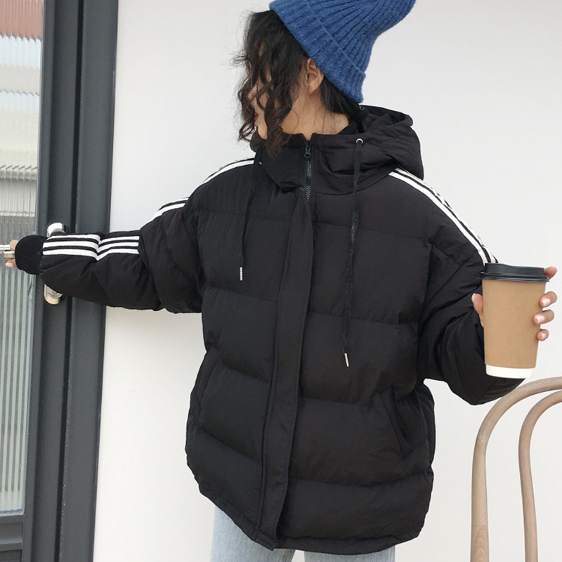 冬裝女2018新款韓版寬松加厚棉衣棉服外套學生百搭條紋連帽面包服