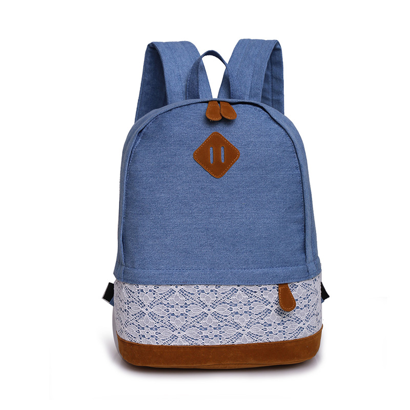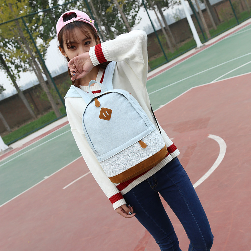 / 新款花邊蕾絲牛仔布雙肩包韓甜美學院風小清新背包中小學生書包方