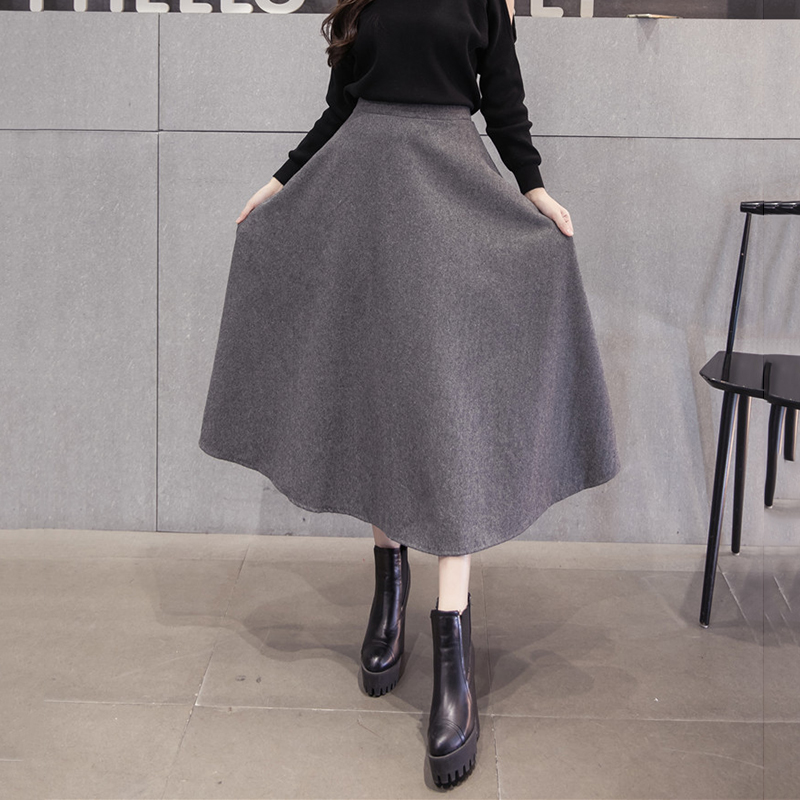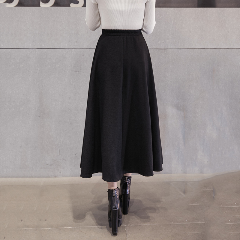 / 女裝秋冬毛呢長裙2018新款顯瘦高腰大擺a字裙女氣質黑色半身裙子