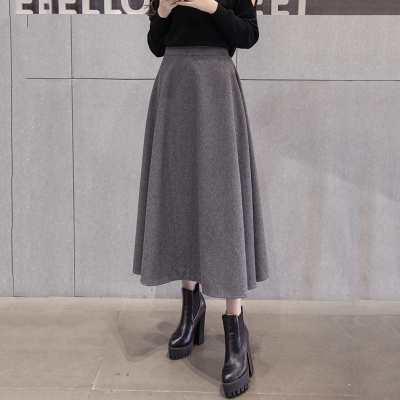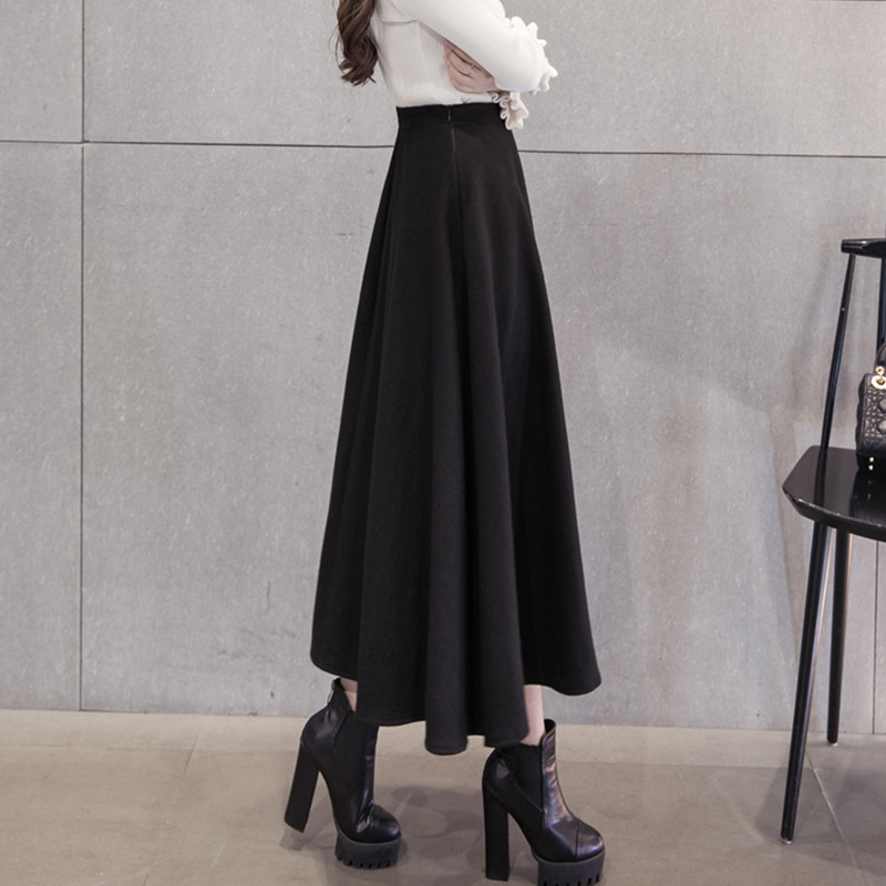 女裝秋冬毛呢長裙2018新款顯瘦高腰大擺a字裙女氣質黑色半身裙子