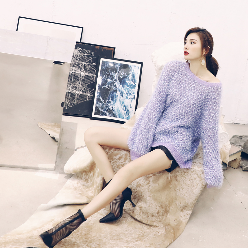/ 2018秋裝新款慵懶風寬松長袖針織衫上衣毛衣皮短褲網紅氣質套裝潮