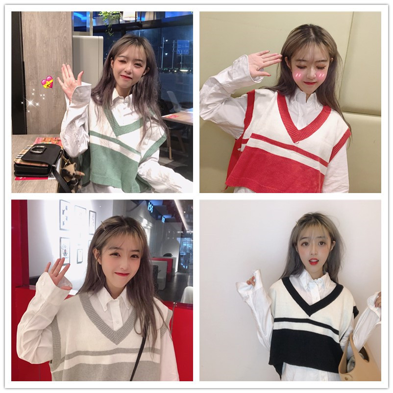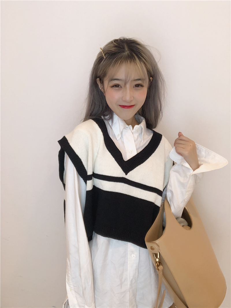 / 秋季女裝韓版學院風時尚寬松百搭針織衫無袖背心短款馬甲上衣外套