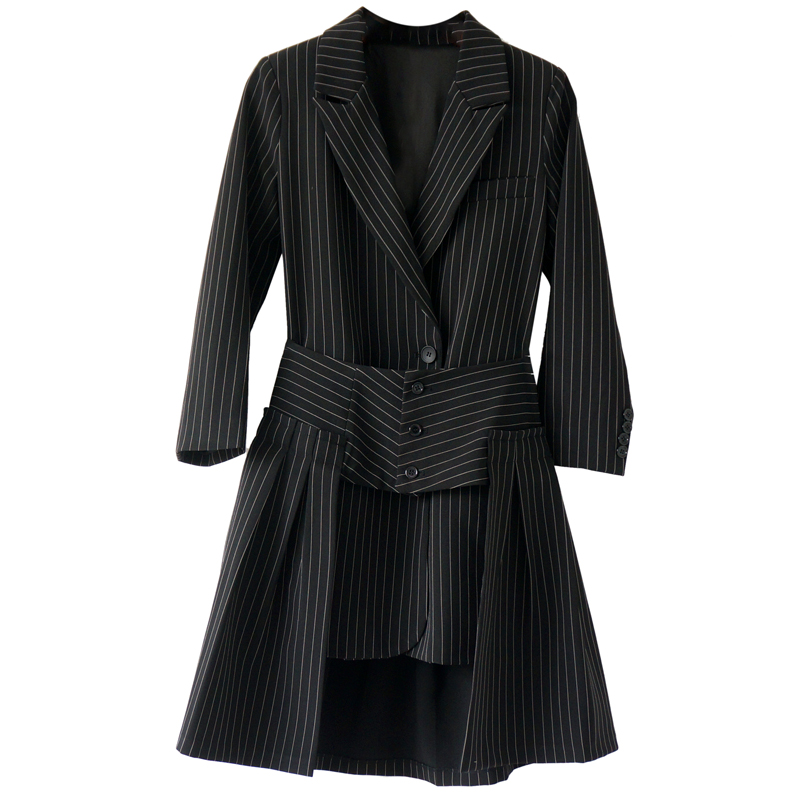 名媛氣質條紋套裝2018春季新款女時尚修身西裝外套半身裙兩件套潮