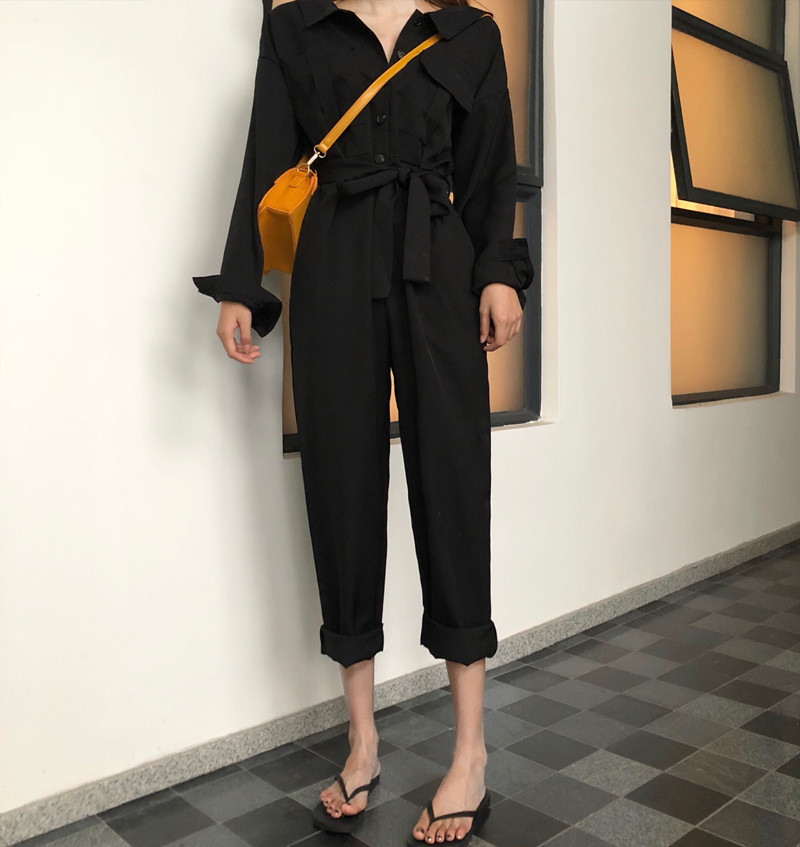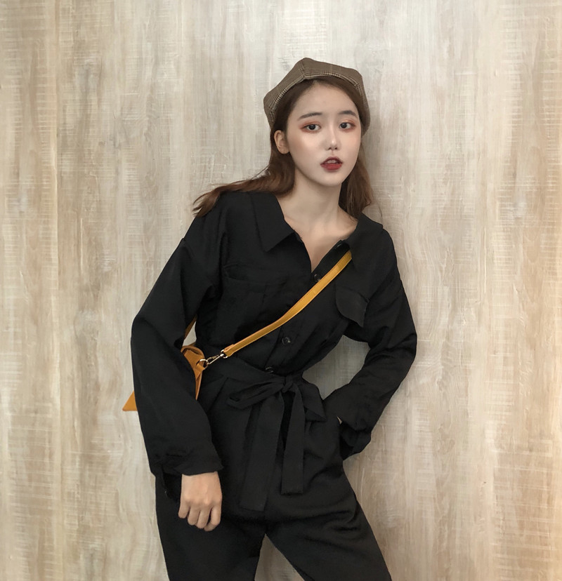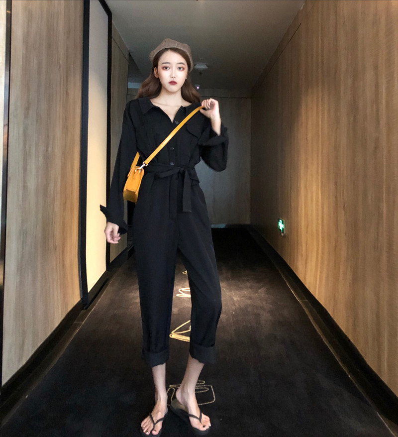 / 新款純色多穿法露肩翻領OL西裝小清新時尚百搭復古chic連體褲女潮