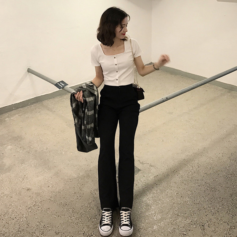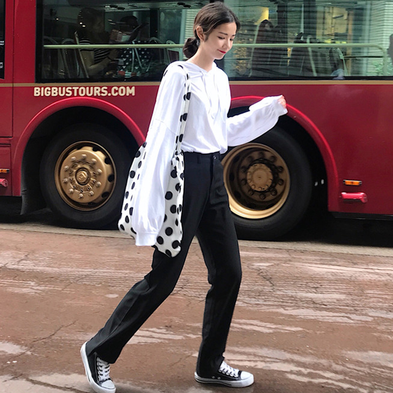 / 休閑褲女秋裝2018新款韓版寬松高腰顯瘦西裝褲學生黑色直筒長褲子