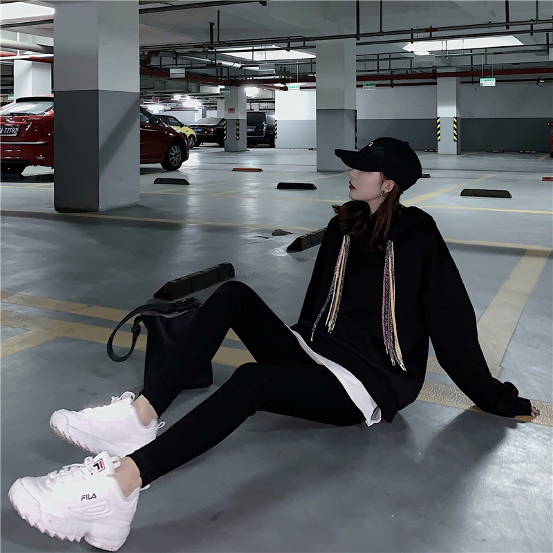 學院風流蘇抽繩連帽衛衣女秋冬裝2018新款韓版慵懶寬松長袖外套潮