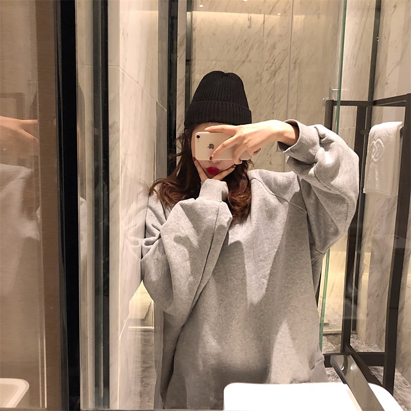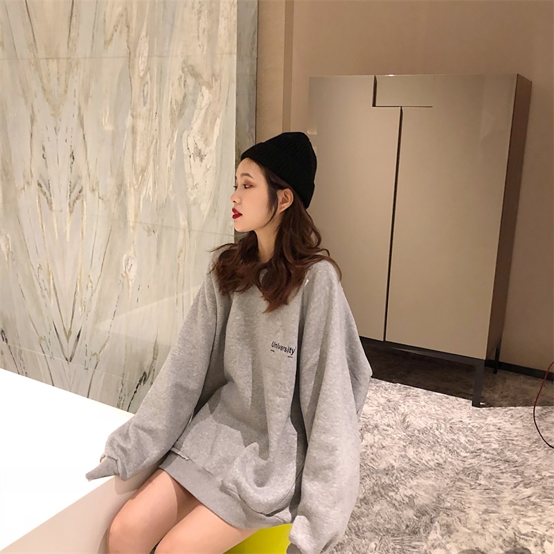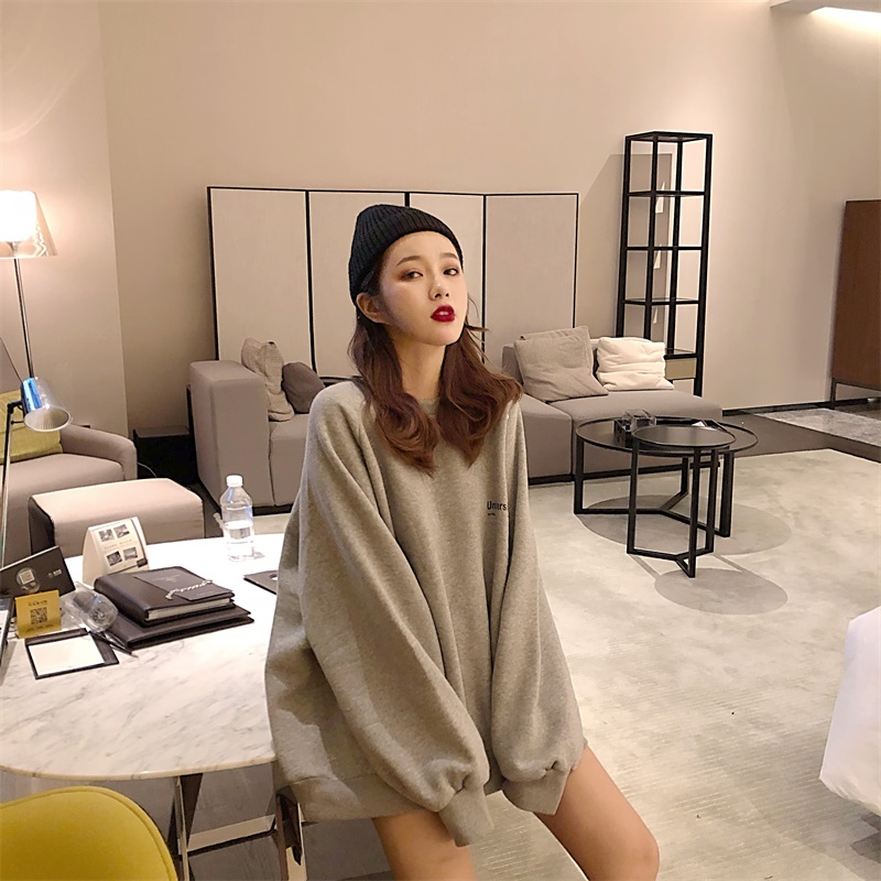 新款韓版時尚寬松顯瘦圓領長袖字母套頭加絨加厚衛衣百搭學生上衣