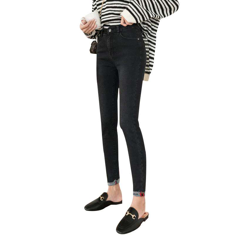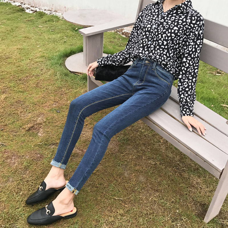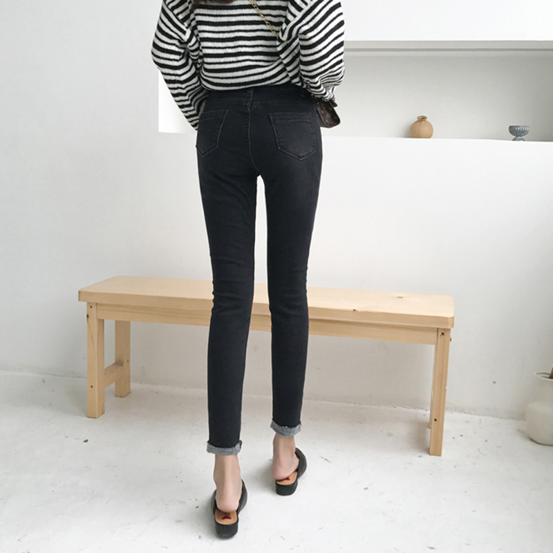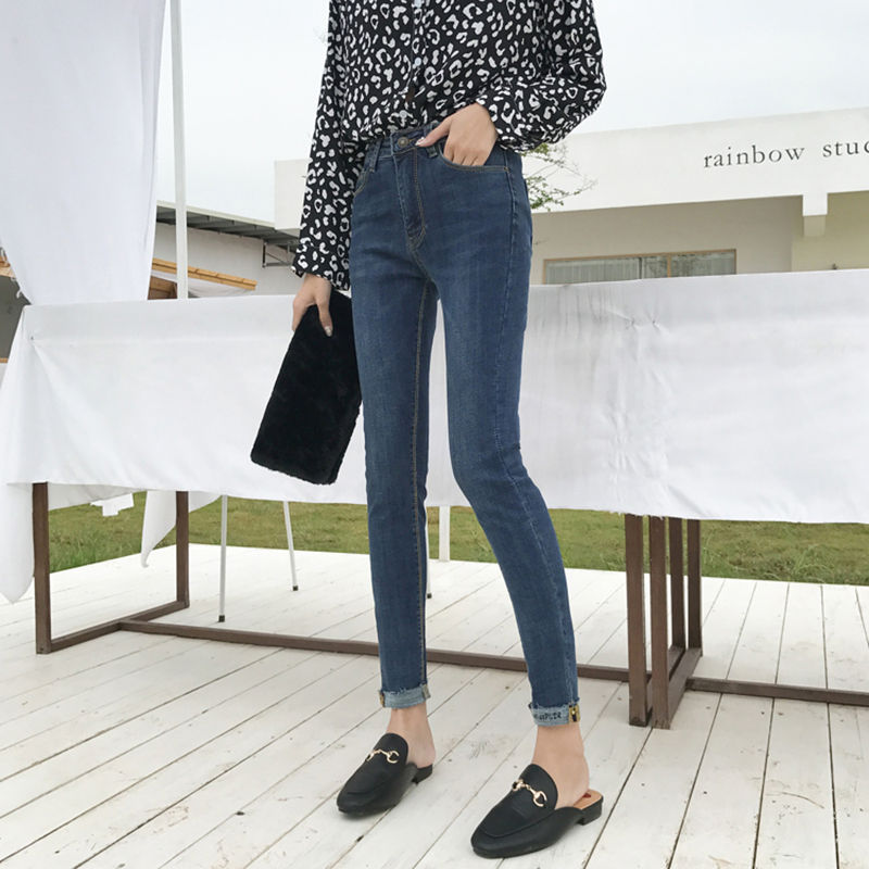 2018秋冬新款女裝韓版學生緊身小腳褲修身高腰彈力初戀褲牛仔褲子