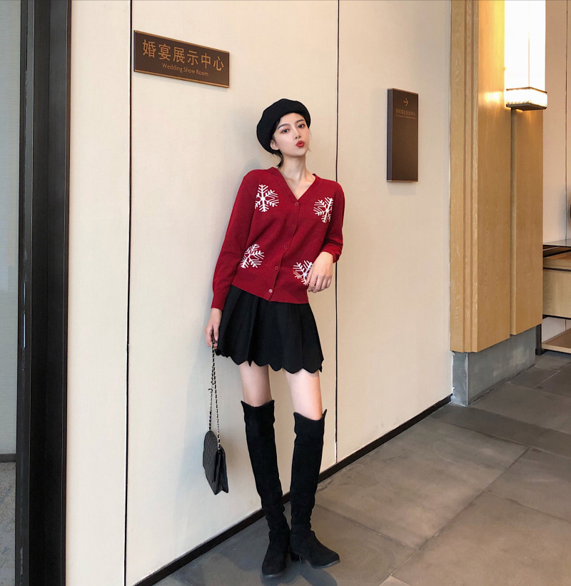/ 2018秋冬新款韓版chic修身百搭雪花針織衫開衫高腰半身裙時尚套裝