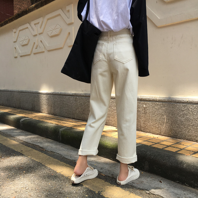 / 褲子女2018秋季新款韓版小清新百搭學生復古chic寬松闊腿牛仔長褲