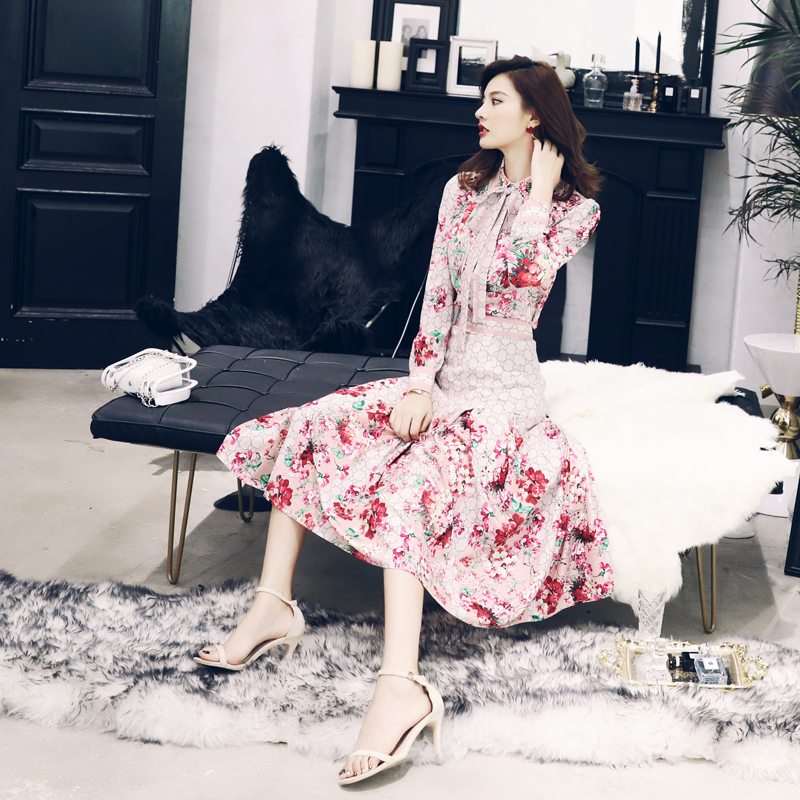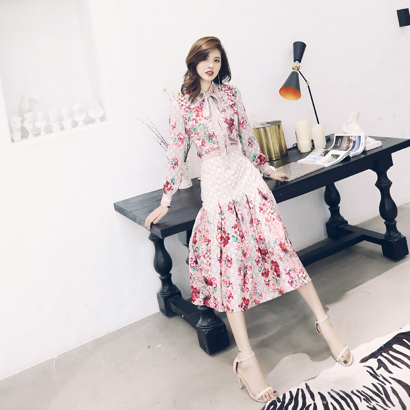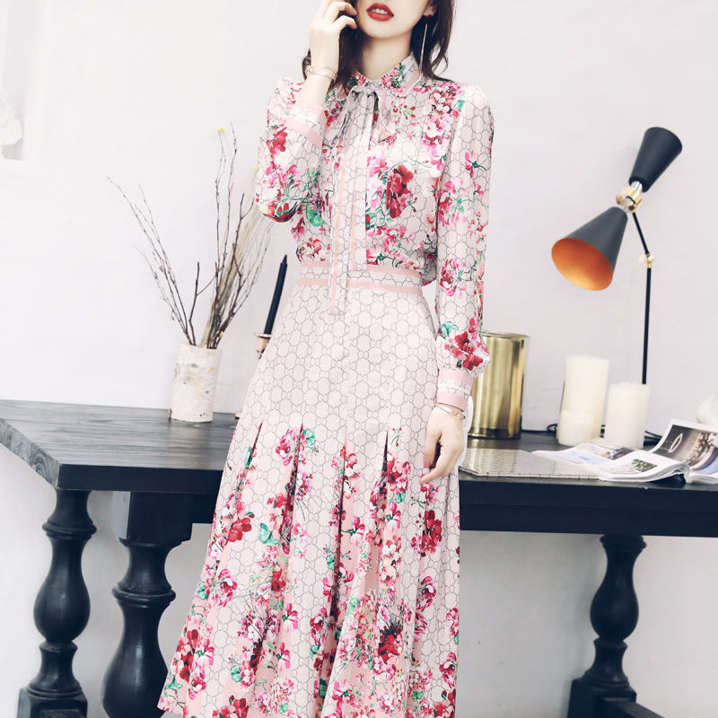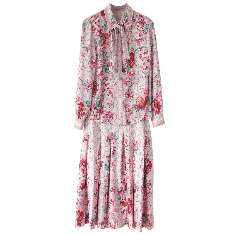 名媛氣質2018夏季新品女神范襯衫百褶半身裙印花兩件套時尚套裝